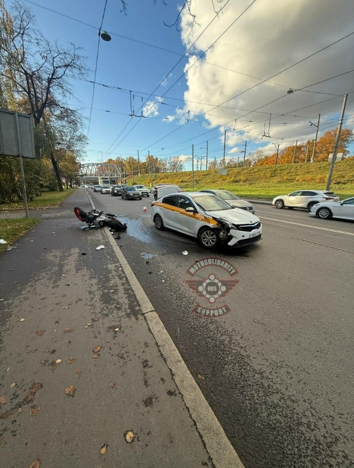 Мужчину забрала прибывшая бригада скорой помощи, при этом, когда врачи оказывали ему помощь, он находился в сознании. Судя по фотографиям аварии, которые опубликовало мотосообщество, железного коня частично выбросило на тротуар, а у автомобиля разбита правая передняя часть. Другие подробности аварии к этой минуте неизвестны.