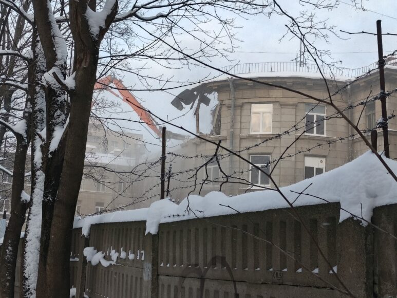 В Выборгском районе Петербурга 8 января начался снос исторического здания 1950-х годов постройки, за сохранение которого градозащитники боролись несколько лет.