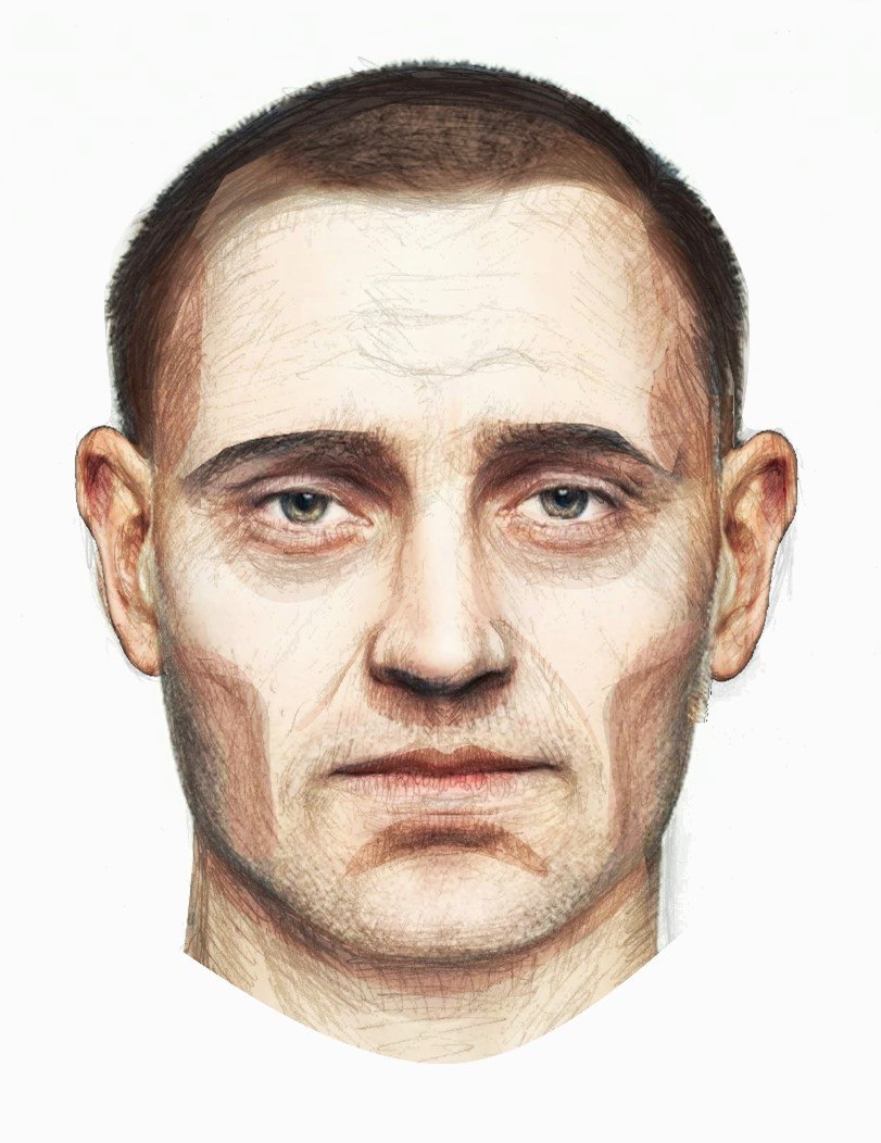 Шинкарский пруд и реконструкция прижизненного облика погибшего. Фото: соцсети. Графика: СУ СК России по ЛО