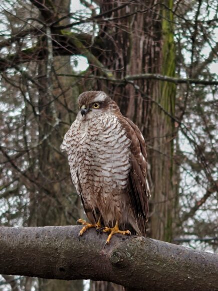 В Петроградском районе запечатлели перепелятника, который почему-то не улетел на зимовку в теплые края.
