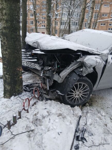На Гражданке «Хавал» разбил припаркованные автомобили и врезался в дерево: мужчине за рулем стало плохо