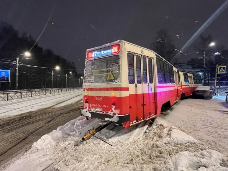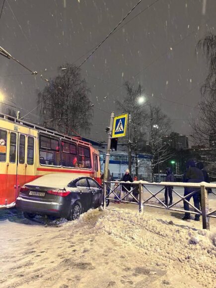 В Приморском районе участником ДТП стал трамвай, а в Калининском – лазурный автобус.