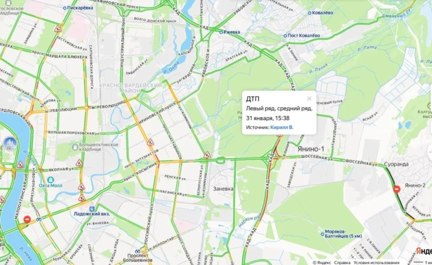 При этом пробка на внешнем кольце растянулась от Мурманского шоссе до Колтушского.