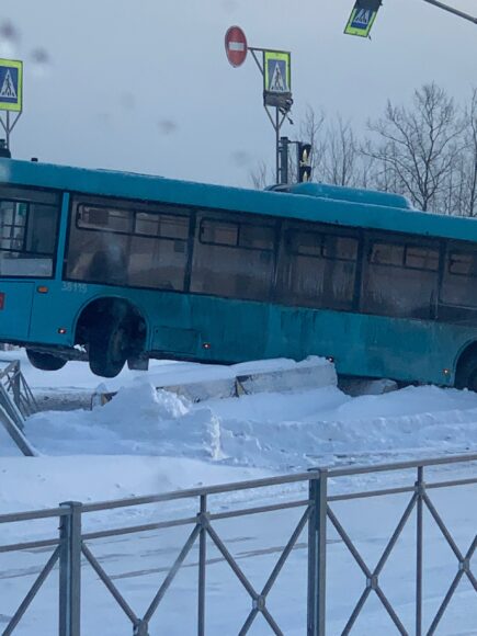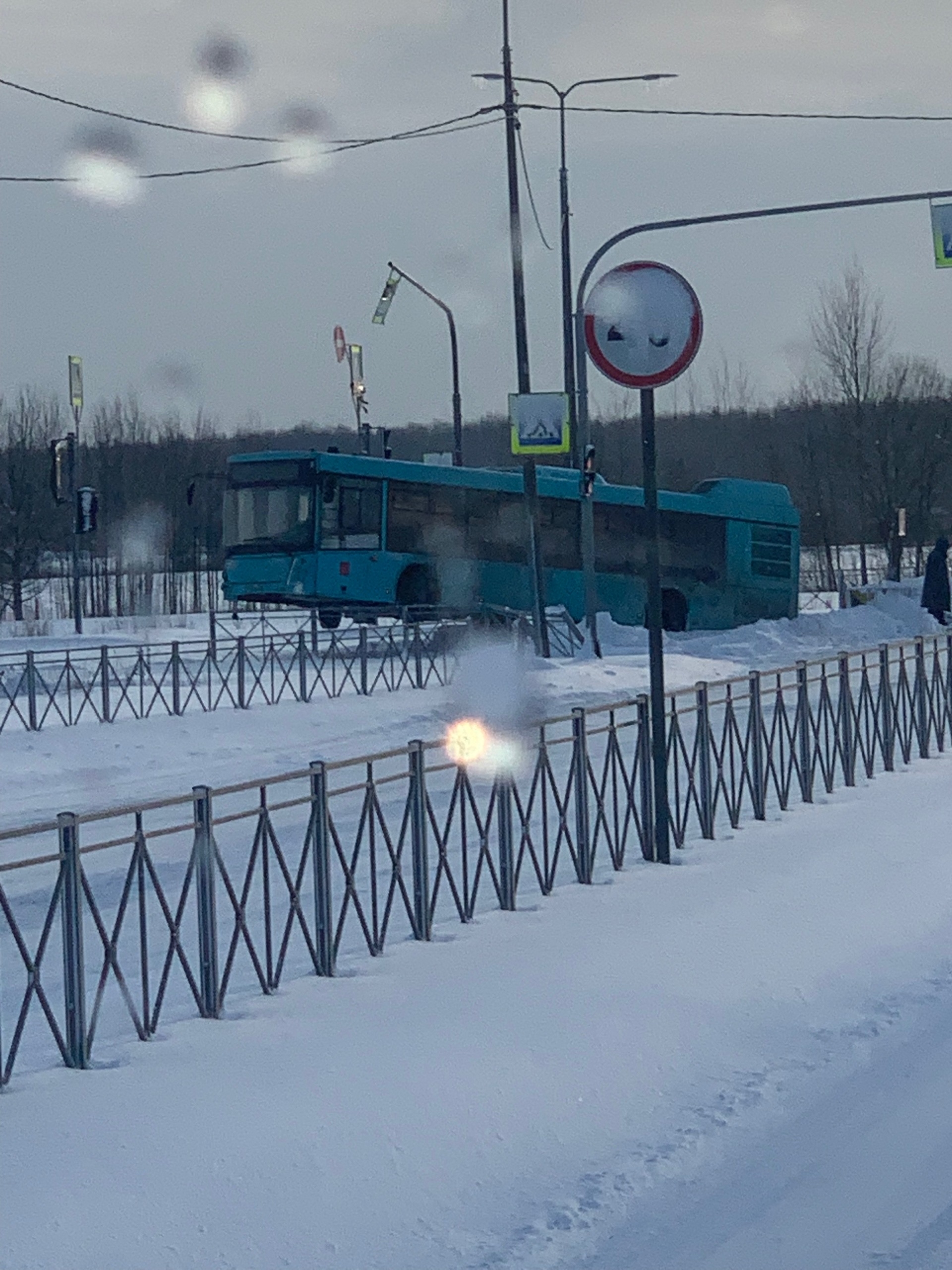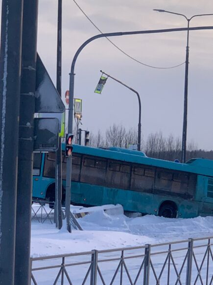 Во втором часу дня лазурный автобус протаранил бетонный блок у перекрестка Рубежного шоссе и Оборонной улицы в городе Колпино, недалеко от следственного изолятора «Кресты».