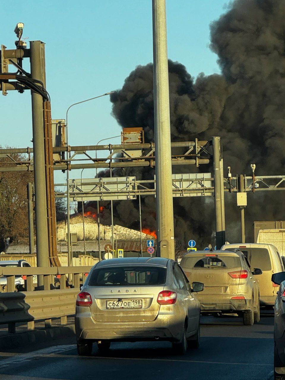 Пожарные потушили ангар в Кировском районе Петербурга.