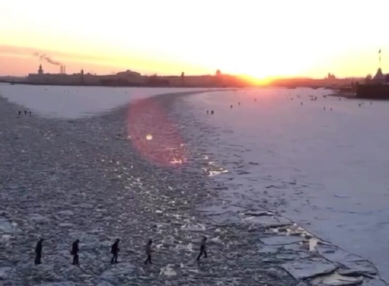 Петербуржцы, которым явно не хватает адреналина, нашли новый вид экстремального развлечения: они прогуливаются по «дорожке», оставленной ледоколом на замерзшей Неве в центре города.