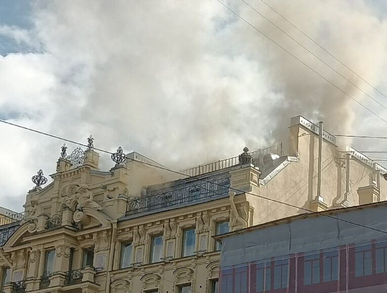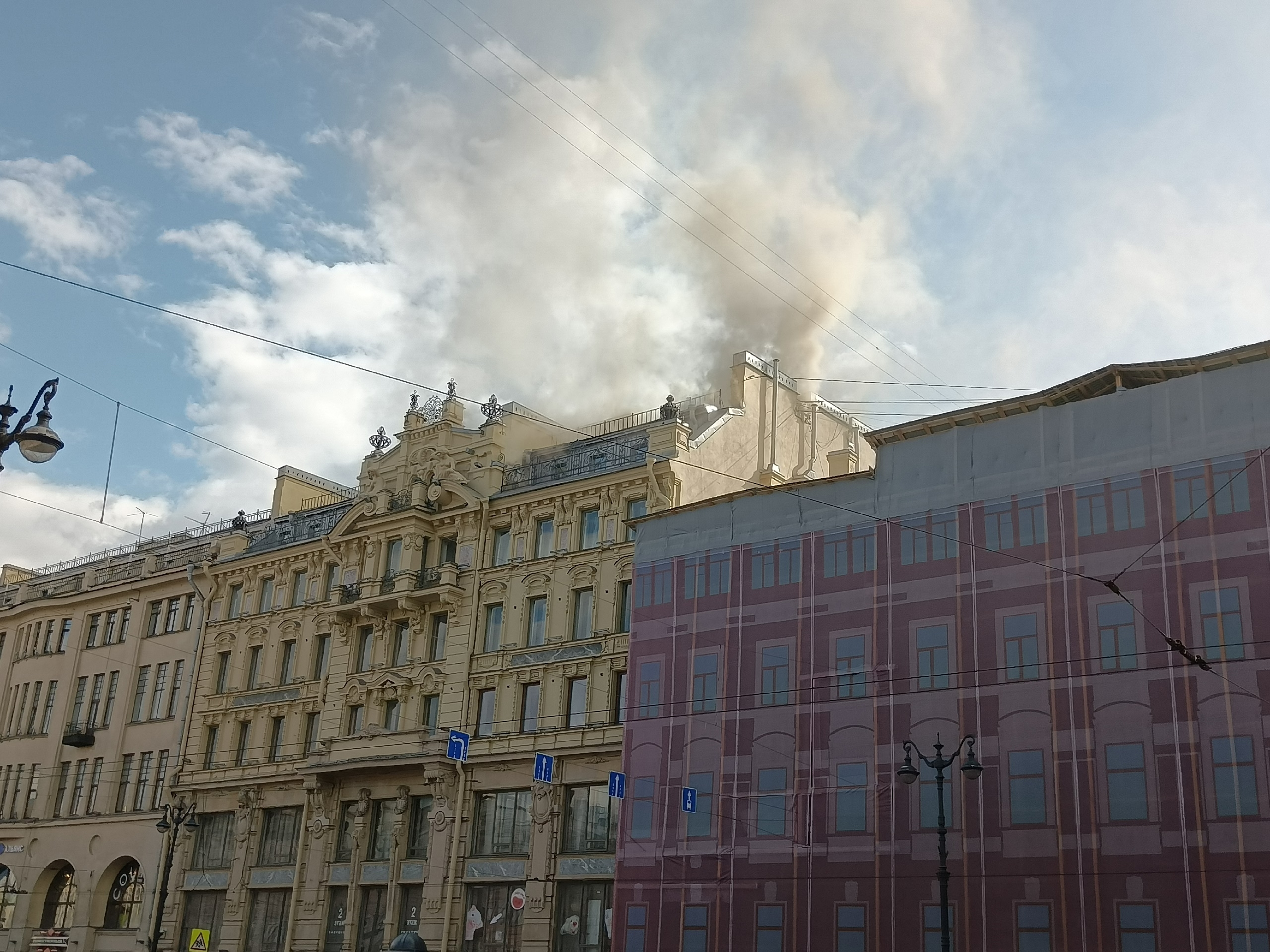 На Невском проспекте в шестиэтажном доме №65, известном как Доходный дом Генриха Блокка, около трех часов дня загорелся чердак.