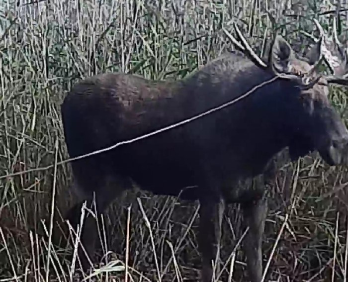 Животное около двух суток металось на маленьком клочке земли и не могло выбраться. Рога зацепились за невесть откуда взявшийся трос, и лось оказался привязан. К счастью, его заметили и сообщили об этом районному инспектору комитета по охране животного мира Ленобласти.