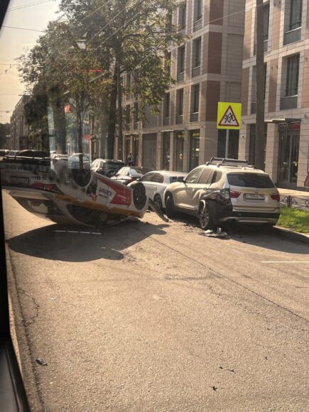 «Омода» сломала дверь «Хёндэ», а сбитый мужчина упал на асфальт без сознания. Тем временем, виновник ДТП продолжил путь, наехал на стоявший без водителя «БМВ» и перевернулся. «Немец», в свою очередь, врезался в припаркованный впереди него «Мерседес».
