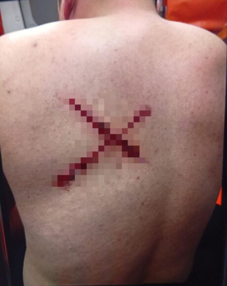 Спасаясь от верной гибели, преследуемый выбежал на улицу, но пьяный неадекват догнал его у парадной и всадил нож в спину. К счастью, поразил не насмерть. В 22:10 наряд Росгвардии, в это время патрулировавший окрестности, увидел драку и схватил нападавшего. Нож отобрали, пострадавшему вызвали скорую помощь, а задержанного отвезли в полицию для дальнейшего разбирательства.