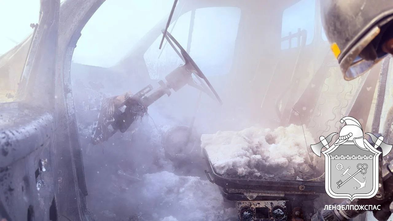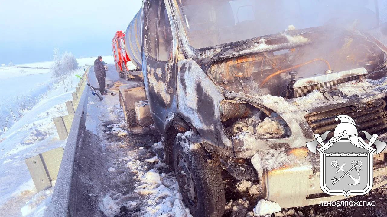 В Ломоносовском районе Ленобласти ассенизаторская машина проиграла схватку с огнем.