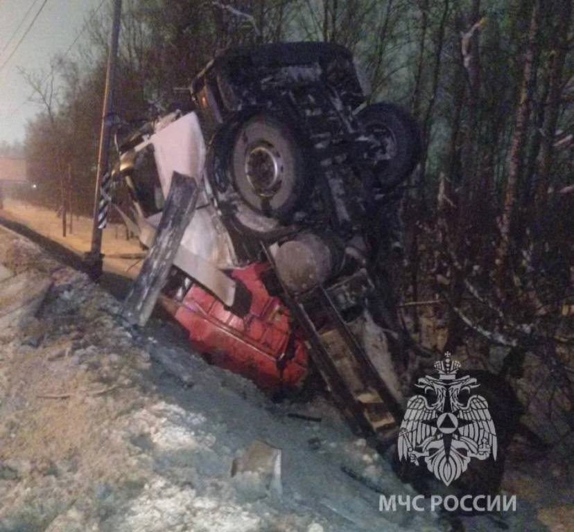 Н фотографиях и видеозаписи, опубликованных ведомством, хорошо видны перевернутая цистерна и тягач, который буквально встал на дыбы перпендикулярно земле. В пресс-службе областного МЧС уточнили, что бензовоз перевозил 30 кубометров топлива. После аварии была зафиксирована так называемая капельная течь топлива.