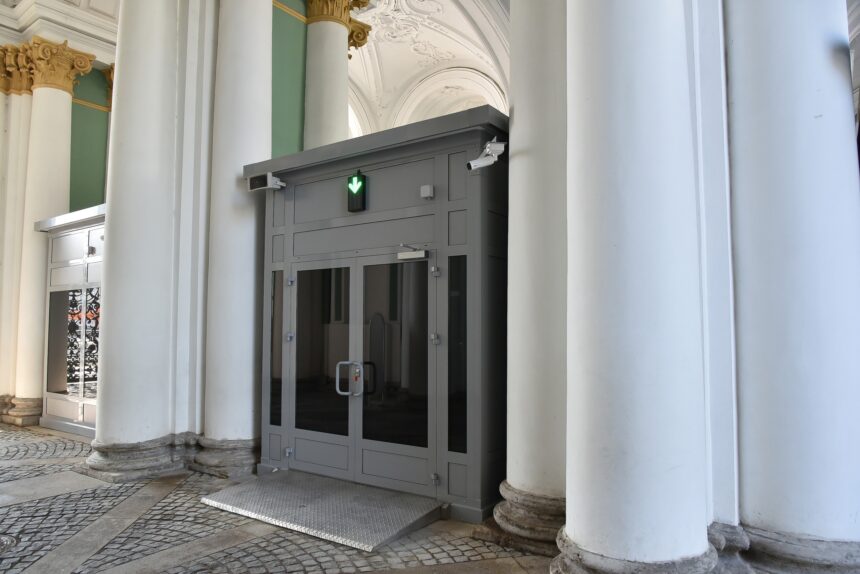 В Эрмитаже, на входе в Зимней дворец, начал функционировать временный пункт досмотра. Он оборудован в арке главных ворот. Как отмечает пресс-служба музея, досмотровый модуль станет важнейшим элементом комплексной системы безопасности музея, усилит антитеррористическую и противокриминальную защиту.