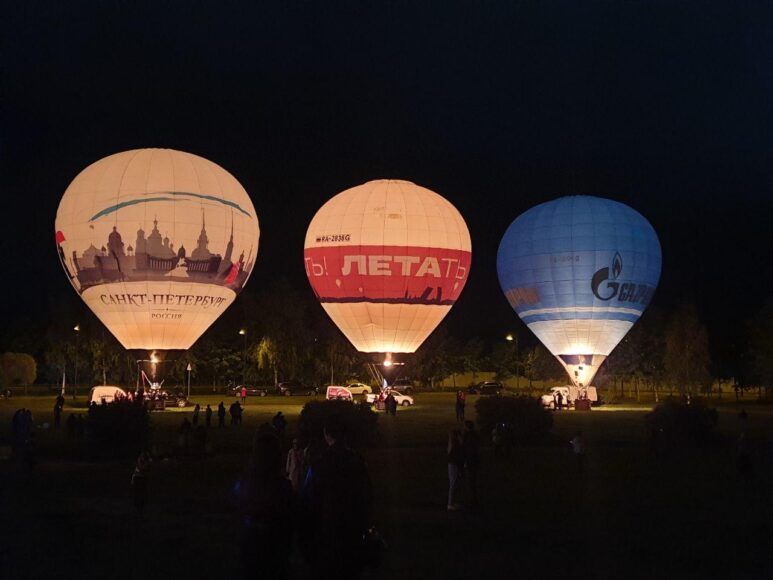 Самым ярким событием вчерашнего вечера стало свечение шаров: пилоты включали горелки короткими импульсами, так, что купола озарялись светом, но при этом не поднимались в воздух.