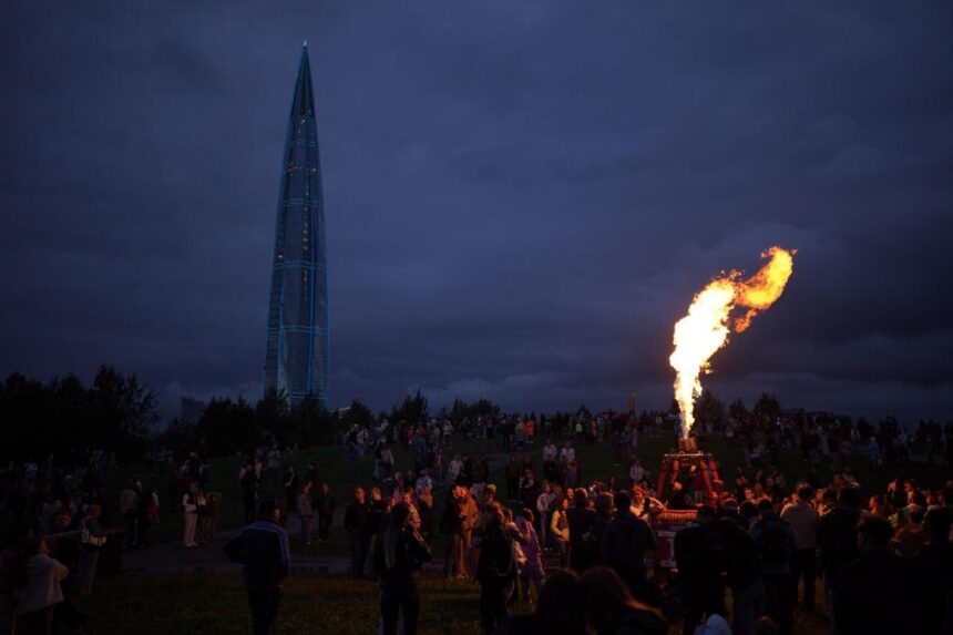 Всем, кто собрался субботним вечером в парке 300-летия Санкт-Петербурга, пришлось довольствоваться концертом, мастер-классами, фотосессиями и другими земными развлечениями от организаторов праздника.