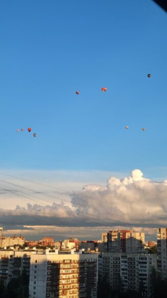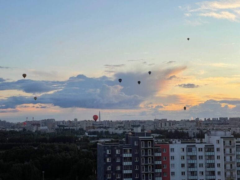 Лишь сегодня «Ковëр», наконец, был отменен, и небо открылось для воздухоплавателей. Разноцветные шары взмыли в воздух и порадовали петербуржцев свободным полетом над городскими кварталами.