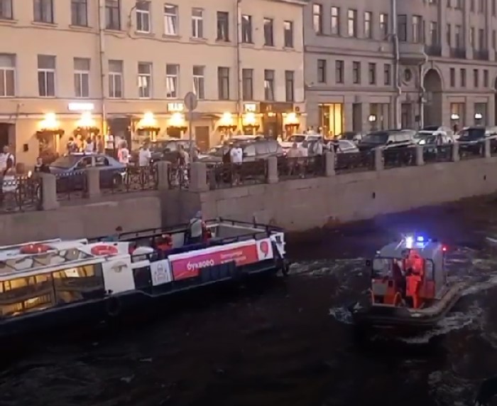 В центре Петербурга двое пассажиров прогулочного теплохода упали за борт.