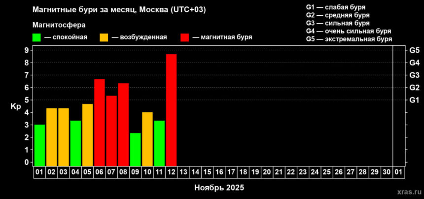 Как рассказали в Лаборатории солнечной астрономии Института космических исследований РАН, на Земле в эти часы происходит очень сильная, почти экстремальная магнитная буря уровня G4.7 (бури ранжируются по своей силе от слабых G1 до экстремальных G5).