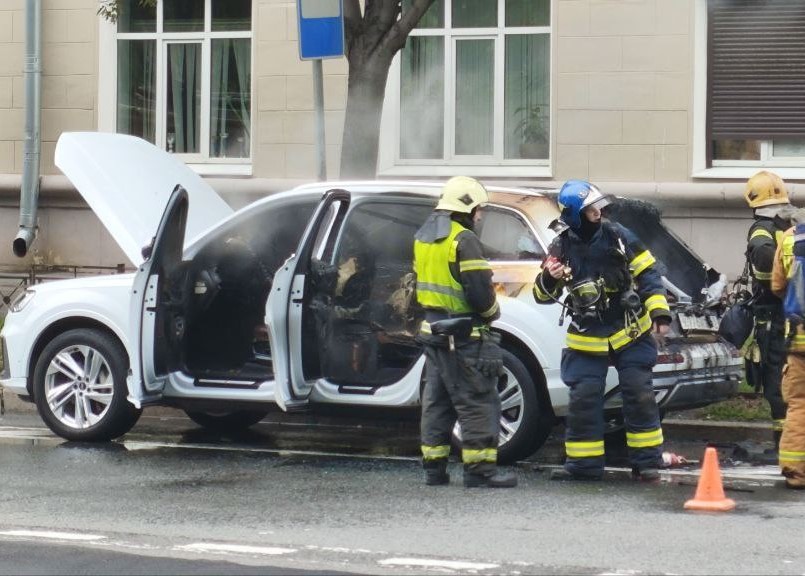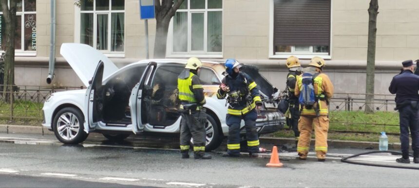 Горящую иномарку тушили днем 31 августа в Петроградском районе Петербурга.