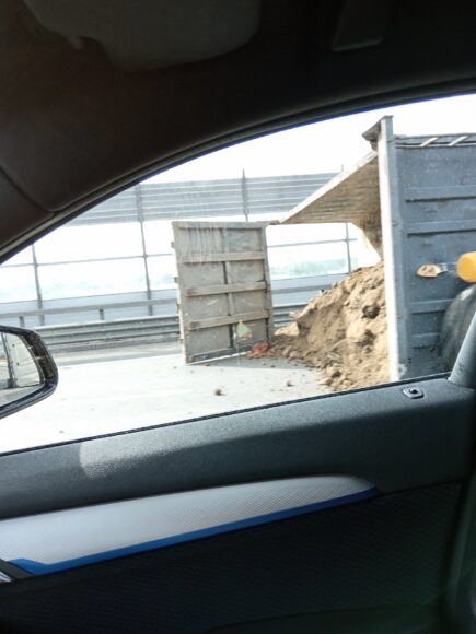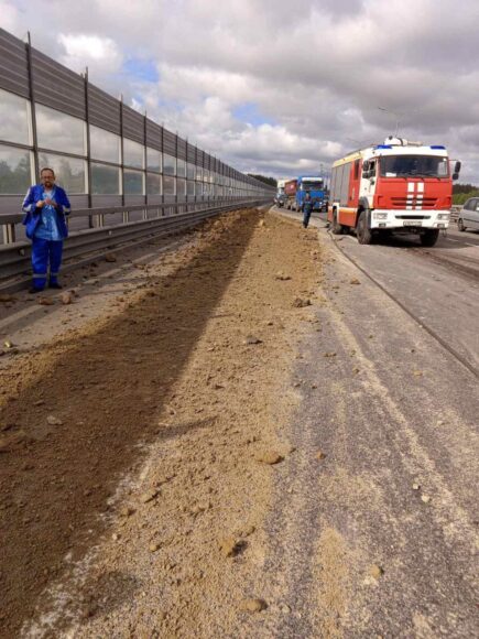 На 15-м километре внутреннего кольца, в районе Левашово, около 8.50 опрокинулся самосвал. Машина, упав, проехала несколько метров на боку, рассыпая песок из кузова. В результате обочина Кольцевой стала похожа на песочницу.