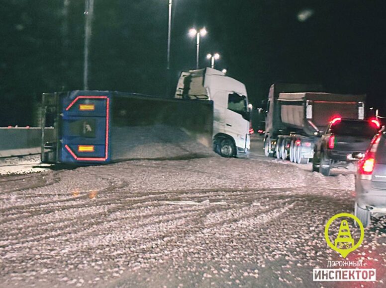 О перевернувшемся тонаре сообщил в своем телеграм-канале «Дорожный инспектор». По информации одного из подписчиков паблика, ДТП произошло сегодня, 7 декабря, около 19:15. Упал грузовик, который двигался в сторону Петербурга.