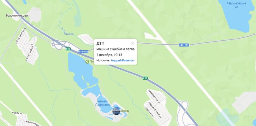 «Яндекс.Карты» показывают, что местом аварии стал 126-й километр трассы «Скандинавия» - недалеко от поселка Толоконниково.