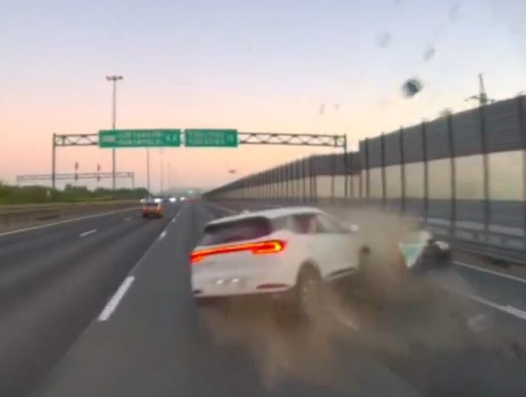 В шесть часов утра на 34-м километре внешнего кольца КАД, после Пискарёвской развязки, в правом ряду остановился каршеринговый автомобиль, в который вскоре после этого на большой скорости въехал «китайский кроссовер.