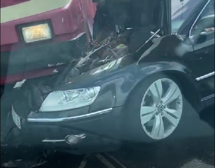 Удар получился сильным – капот автомобиля наполовину ушел под вагон.