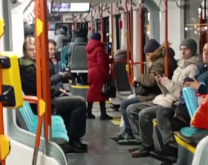 Один из пассажиров снял, как трамвай во время движения поворачивает – и тут же раздается грохот, а в вагоне начинается тряска. Автор ролика поделился записью с «Мегаполисом».