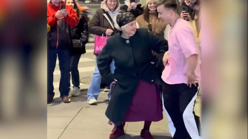 Милейшая женщина не смогла пройти мимо уличной вечеринки и, по словам очевидцев, моментально затмила всех остальных танцоров, рассказали очевидцы в социальных сетях.