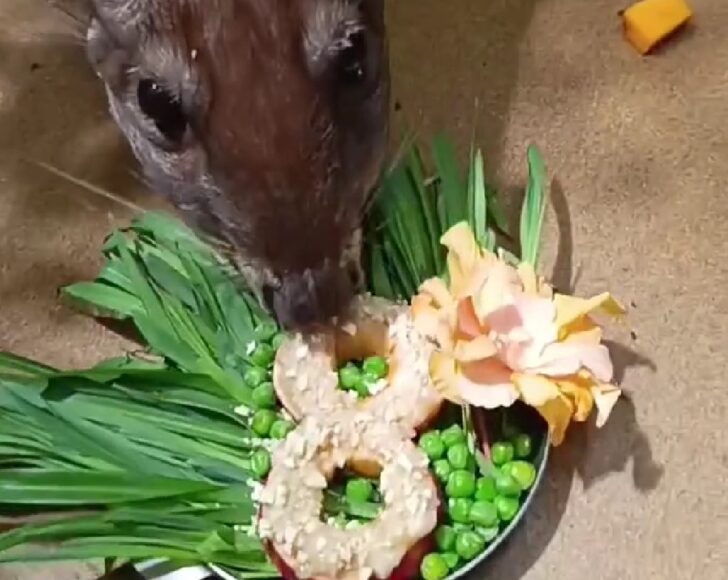Главным героем стал пака по кличке Гринхарт, «подаривший» зрительницам на 8 марта роскошное угощение. Кавычки нельзя не поставить, поскольку весь десерт грызун употребил сам.