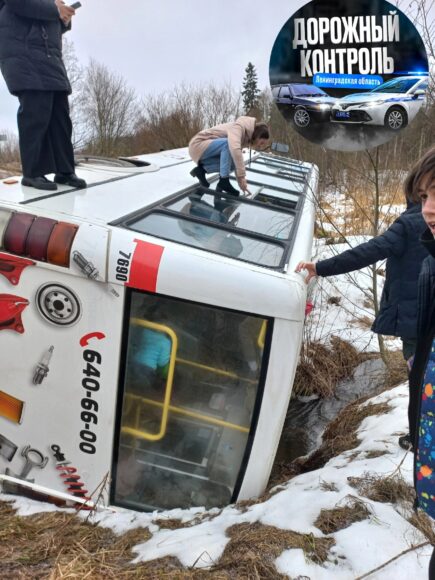 В ДТП попал рейсовый автобус №3Б, ехавший из города Кингисеппа в поселок Кингисеппский. Около 15.30 у деревни Александровская Горка его занесло на повороте, и он опрокинулся в кювет.