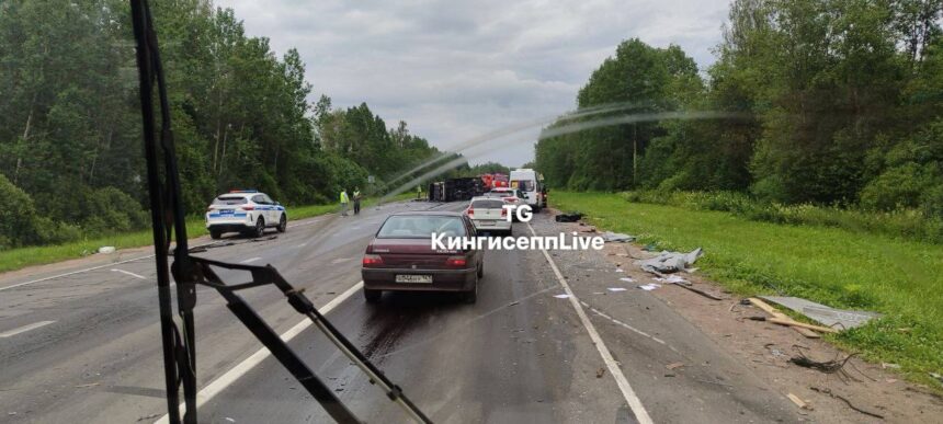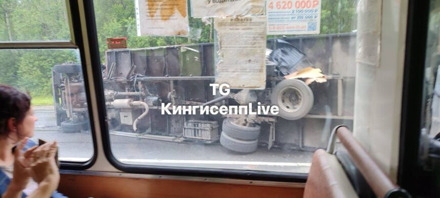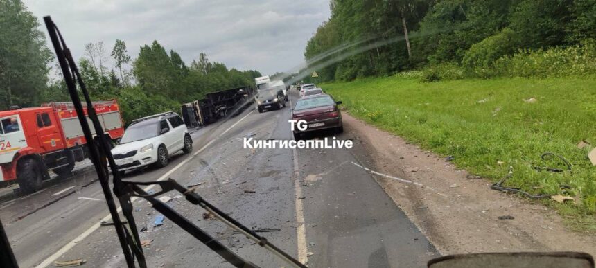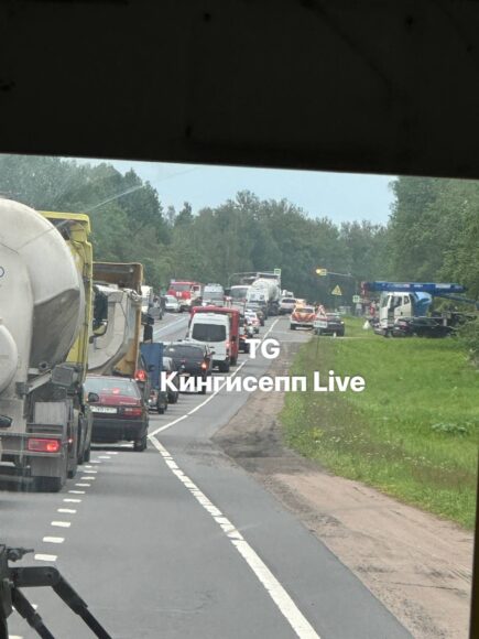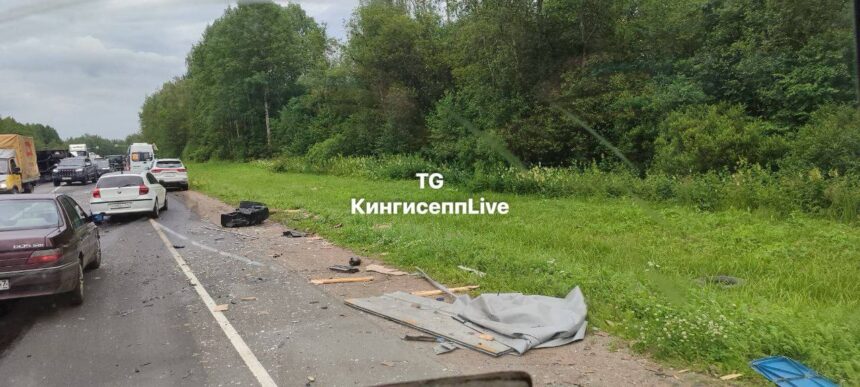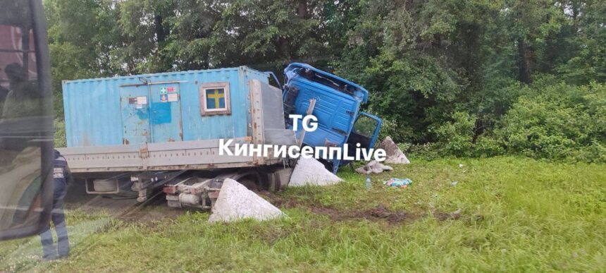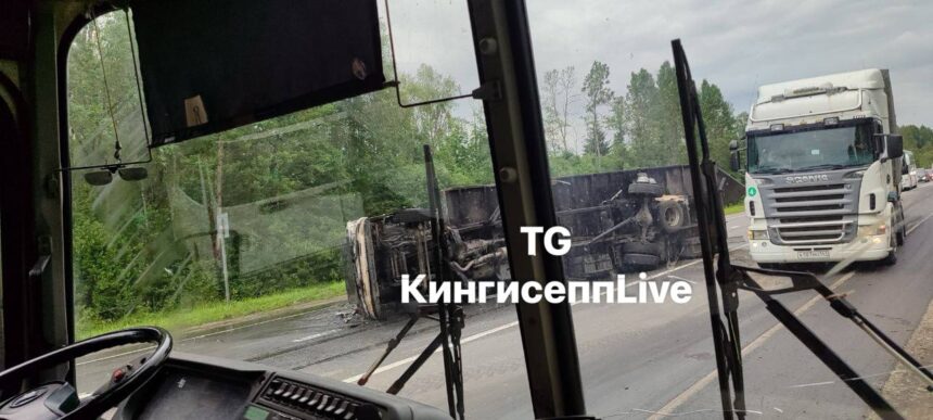 Под Кингисеппом столкнулись две фуры. Одна загорелась, вторая улетела в кювет, оба водителя – в больнице