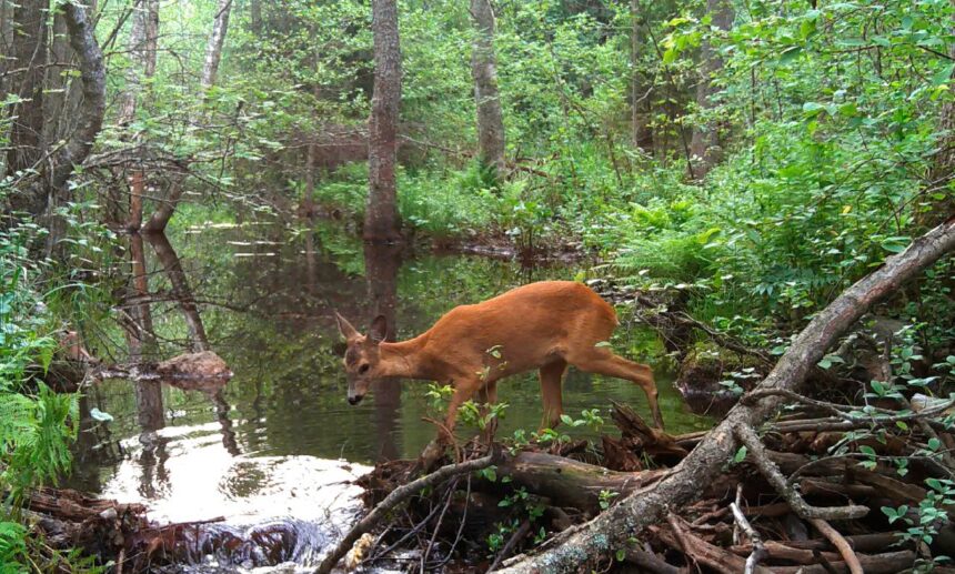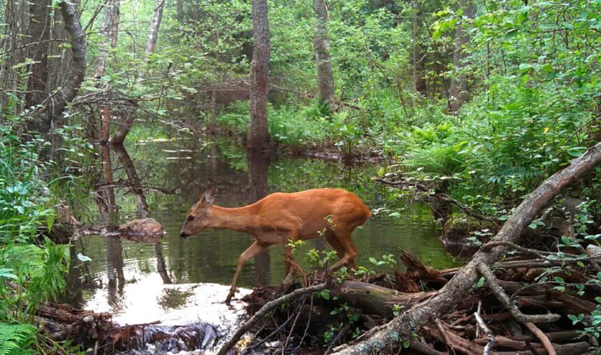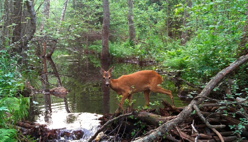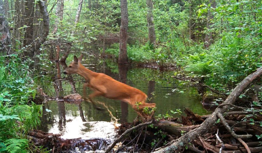 Молодая самка европейской косули продемонстрировала свои недюжинные легкоатлетические способности – невероятно ловко перепрыгнула лесную речку. А вот рыжая плутовка не стала рисковать своей летней шубкой и отправилась искать переправу, сообщил Павел Глазков в своем телеграм-канале «Каждой твари по паре».