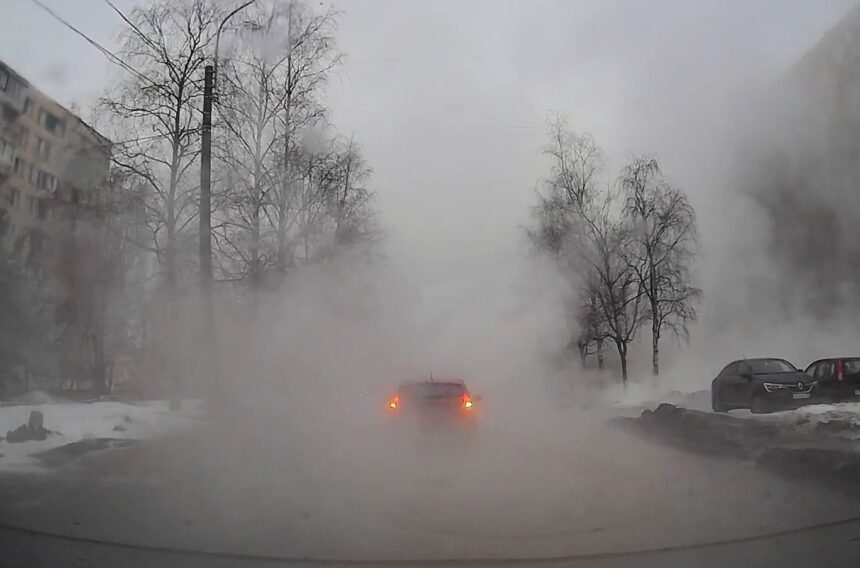 ЧП случилось на участке подающего теплопровода 1986 года прокладки диаметром 159 миллиметров, расположенном у дома 7/8 на Богатырском проспекте – на углу с Серебристым бульваром. В результате обе улицы заволокло густым паром.