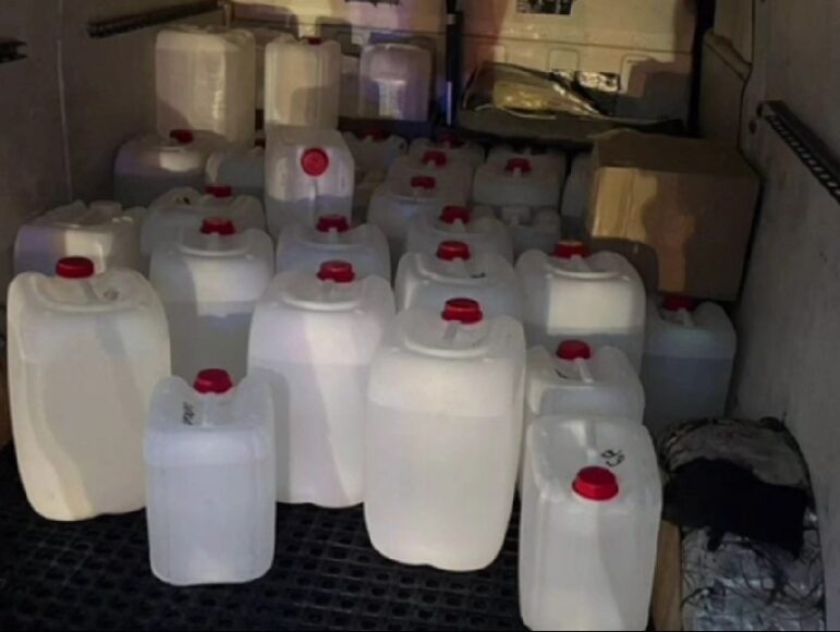 В одном машине они нашли семь картонных коробок с пятилитровыми бутылками. Жидкость, которая была в них налита, общим объемом 135 литров, издавала сильный запах спирта.