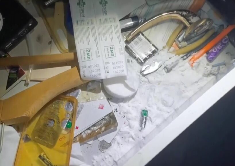 На кадрах оперативной съемки, которую показала полиция, стражи порядка вытаскивают наркотики из шкафов, ящиков, холодильника, тайника под полом – оба жилища буквально переполнены порошками и кристаллами.