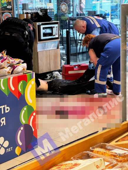Неадекват с ножом залил кровью продуктовый магазин в Выборгском районе Петербурга.