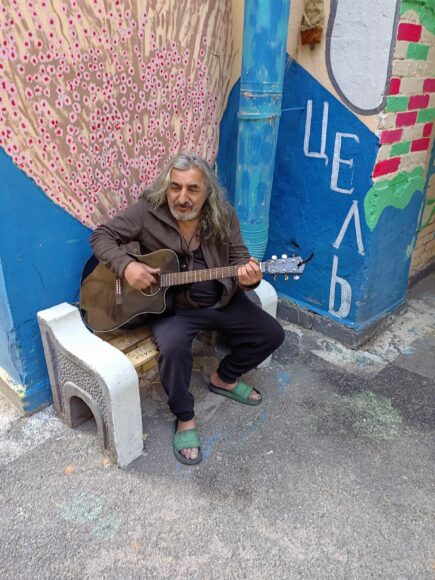 Напомним, художник Искандарян живет в подвале на Полозовой улице почти полтора десятка лет и постоянно украшает дворик своими рисунками и другими объектами стрит-арта. Постепенно это место стало городской достопримечательностью. Гости приходят сюда не только, чтобы сделать фото, но и чтобы пообщаться: помимо художественного творчества Нельсон пишет стихи, играет на гитаре.