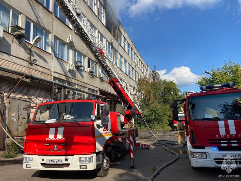 В здании на Большом Смоленском проспекте, 10 полыхнуло после обеда: сообщение о возгорании на пульт дежурного поступило в 14:19. На последнем, пятом, этаже горело административно-складское помещение на площади 40 квадратных метров.