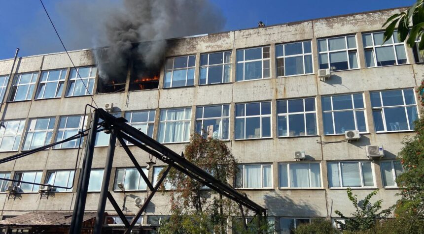 Очевидцы сообщили, что пламя полыхало на верхних этажах бизнес-центра. Находившихся в здании людей, среди которых также были дети, эвакуировали через окна с помощью пожарной автолестницы.
