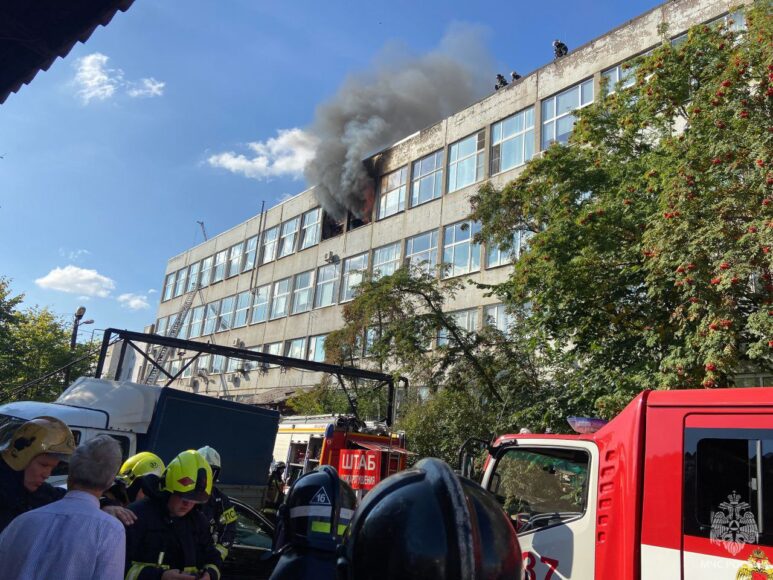«Ждем реакций для нашего героя». ГУ МЧС показало, как спасатель вытаскивал человека из горящего бизнес-центра на Большом Смоленском проспекте. Пожар потушили за три часа