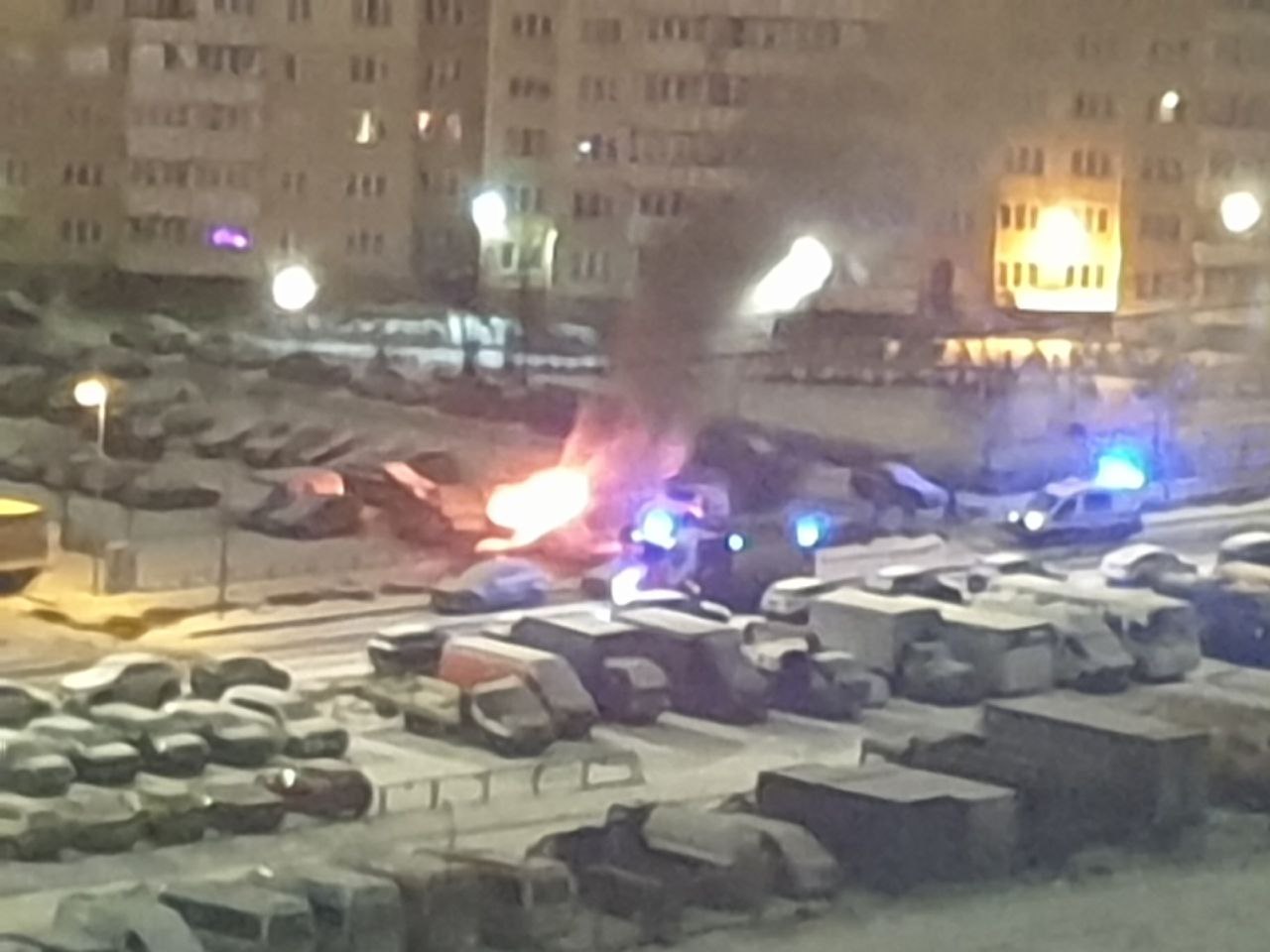 Пожар происходил в четвертом часу ночи на Брестском бульваре недалеко от перекрестка с улицей Маршала Казакова. Сперва загорелся один автомобиль, а затем огонь перекинулся на второй, припаркованный рядом. Местные жители наблюдали за пожаром из окон.