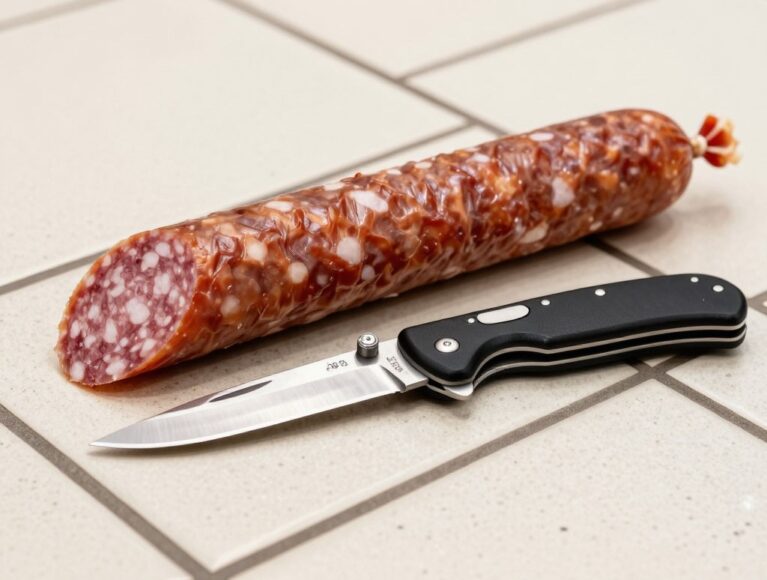 Мужчина открыто похитил мясное изделие и направился к выходу. Унести товар ему не позволила женщина-администратор. Злодей припугнул ее ножом и убежал, но продукт все же бросил.