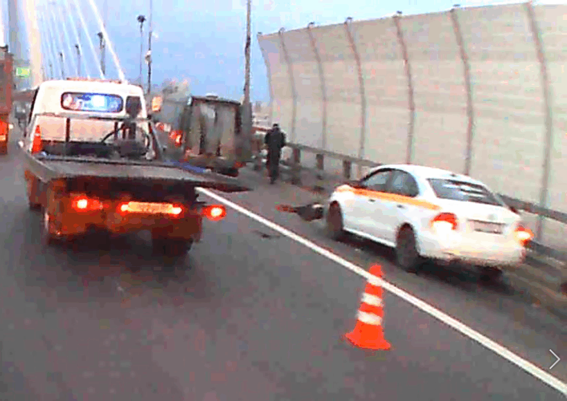 Перед вантовым мостом обоих сбил автомобиль. За рулем такси марки «Фольксваген Поло» сидел 31-летний водитель.