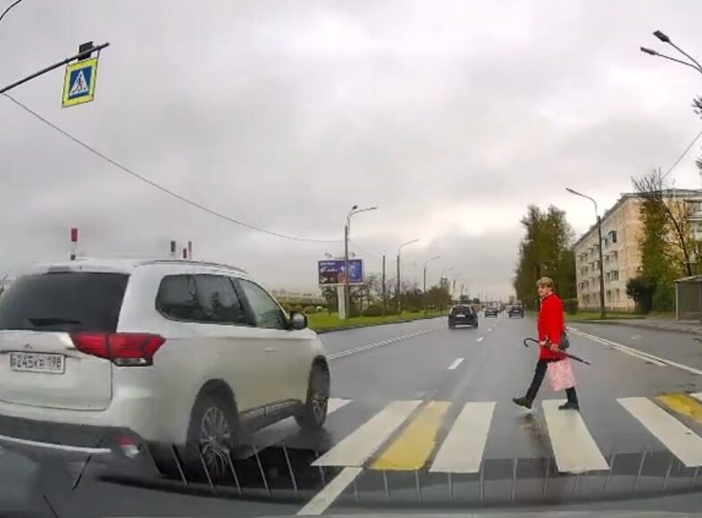 Запись, опубликованная в группе «ДТП-ЧП-СПб» ВКонтакте, была сделана днем 7 октября на Кубинской улице. Приблизившись к нерегулируемому переходу, владелец регистратора притормозил, чтобы уступить даме дорогу.