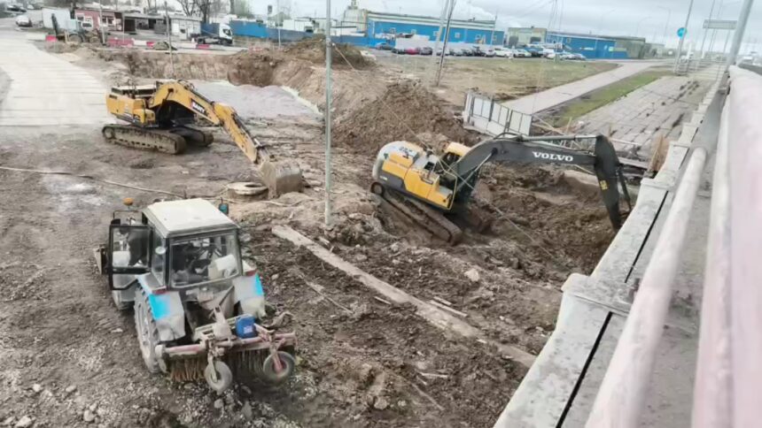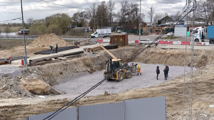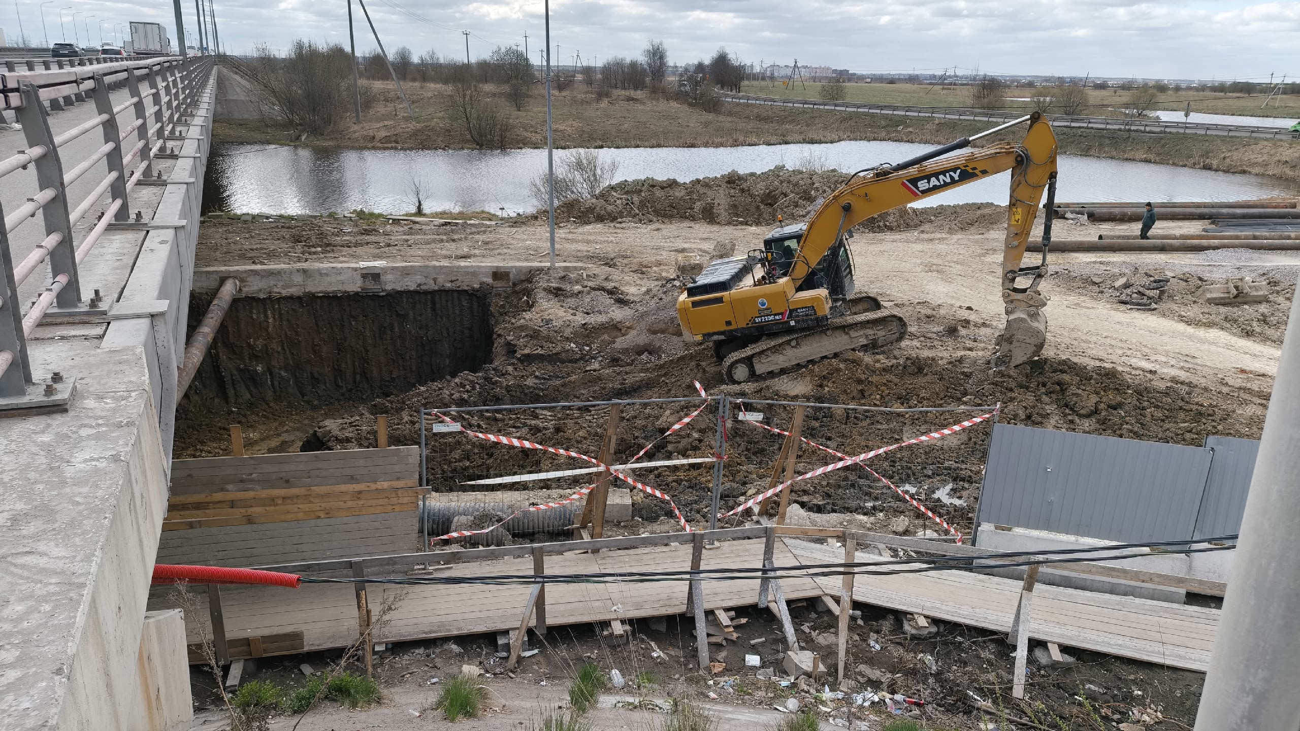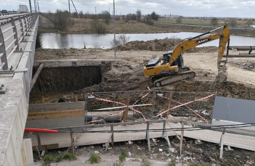 Рабочие приступили к углублению участка дороги, которая проходит под знаменитым низким мостом в Пушкинском районе Петербурга, где на протяжении нескольких лет постоянно застревали грузовики.
