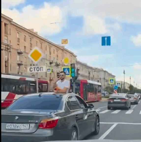 В Московском районе внимание полицейских привлек пассажир «БМВ», который на ходу высунулся из люка машины.