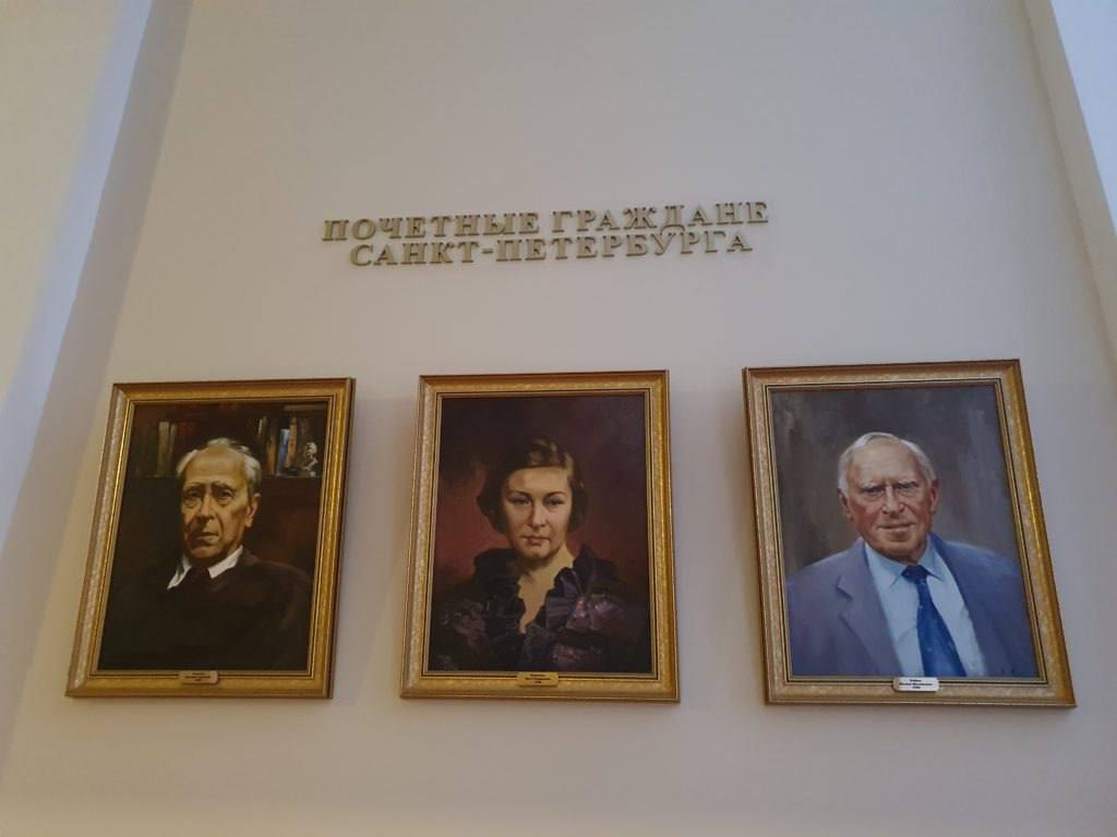 Прежде центральные места в экспозиции занимали портреты первых обладателей этого высокого звания: академика Дмитрия Лихачева, поэтессы Ольги Берггольц и альпиниста Михаила Боброва. Последний известен тем, что в годы Великой Отечественной войны он участвовал в маскировке шпилей Адмиралтейства и Петропавловской крепости, куполов Исаакиевского собора и других архитектурных памятников.