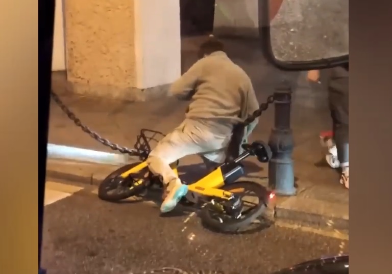 В Центральном районе Санкт-Петербурга был замечен нетрезвый велосипедист, двигавшийся по проезжей части. Молодой человек на арендованном электрическом гаджете шеринга "Whoosh" пытался повернуть на Невский проспект с Садовой улицы.